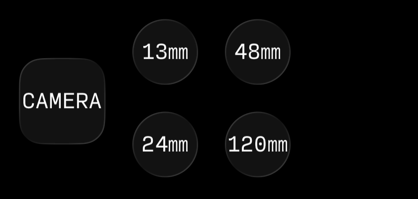 The round individual camera buttons let you jump directly to that focal length. The exact ones you will have access to will vary depending on your device model.