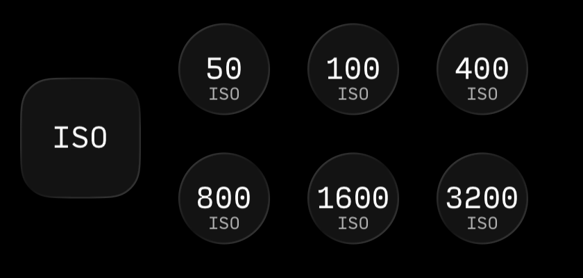 This control consists of two buttons that let you adjust exposure. Tapping + will bring up the exposure by 1/3rd of a stop. Tapping - will bring down the exposure by 1/3rd of a stop. You can hold your tap and drag up or down to adjust exposure by greater values. If haptics are enabled, you will feel a haptic detent on every value change. |