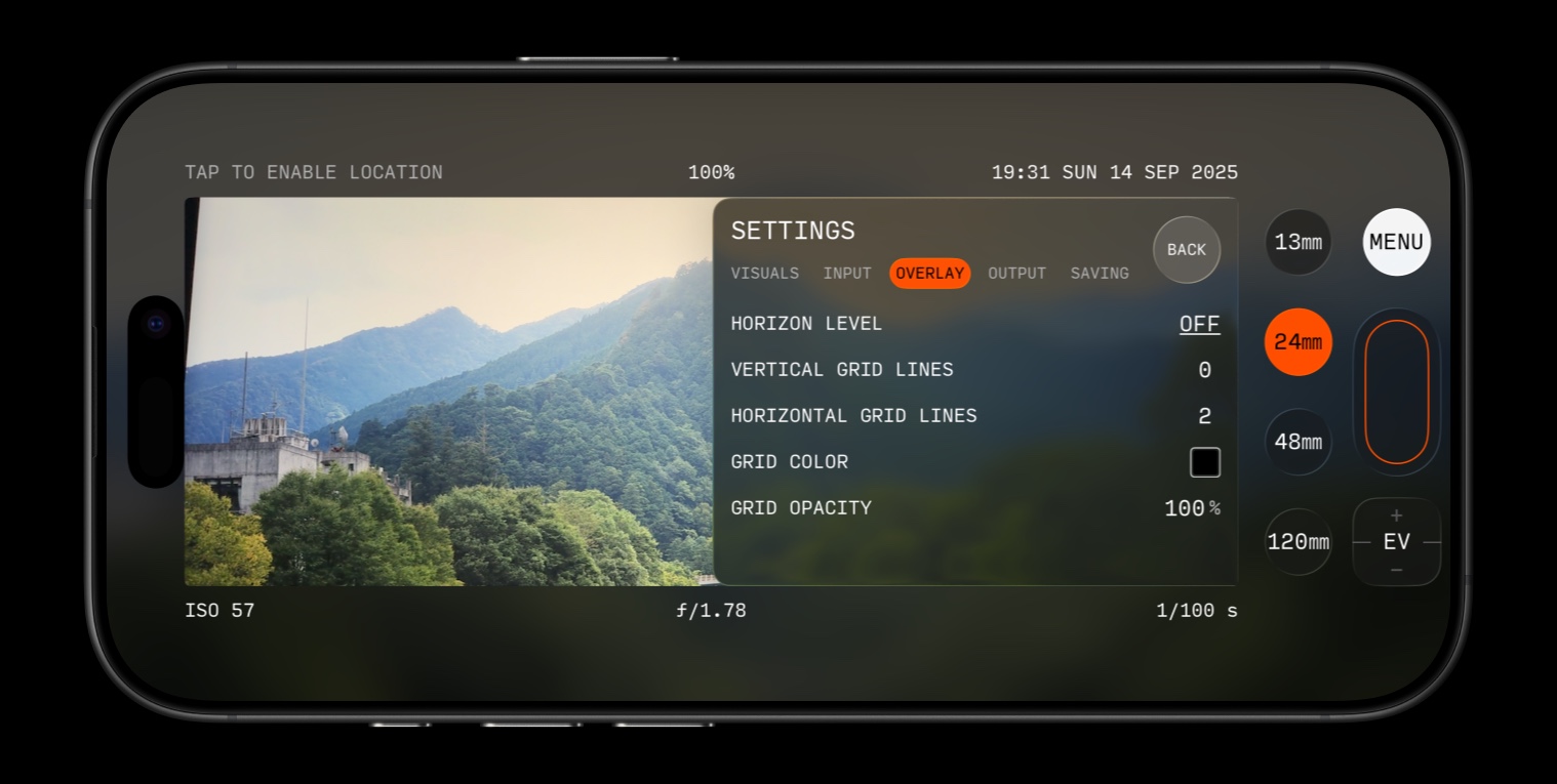 65×24 is a panoramic camera for iPhone, which captures pictures in the 65:24 (2.71) aspect ratio. It is compatible with all iPhones that run iOS 15 or later (any iPhone starting from the iPhone 6S/6S Plus/1st generation SE).