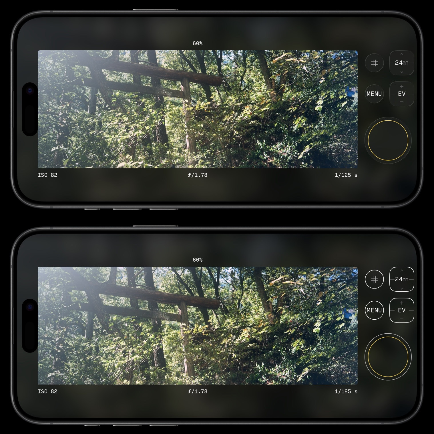 If enabled, this will save a raw Bayer reading of the sensor in DNG format, in addition to the main processed file. RAW files always have a resolution of 4032×1488, even on cameras that support 48MP (as this high megapixel mode is a special, processed mode). Note that on devices with Fusion cameras that enable a 2× sensor crop (such as the wide camera at 2× on iPhone 14 Pro and later, or the telephoto at 8× on iPhone 17 Pro), no RAW file is generated. This is due to limitations in the way iPhone captures photos on those devices. |